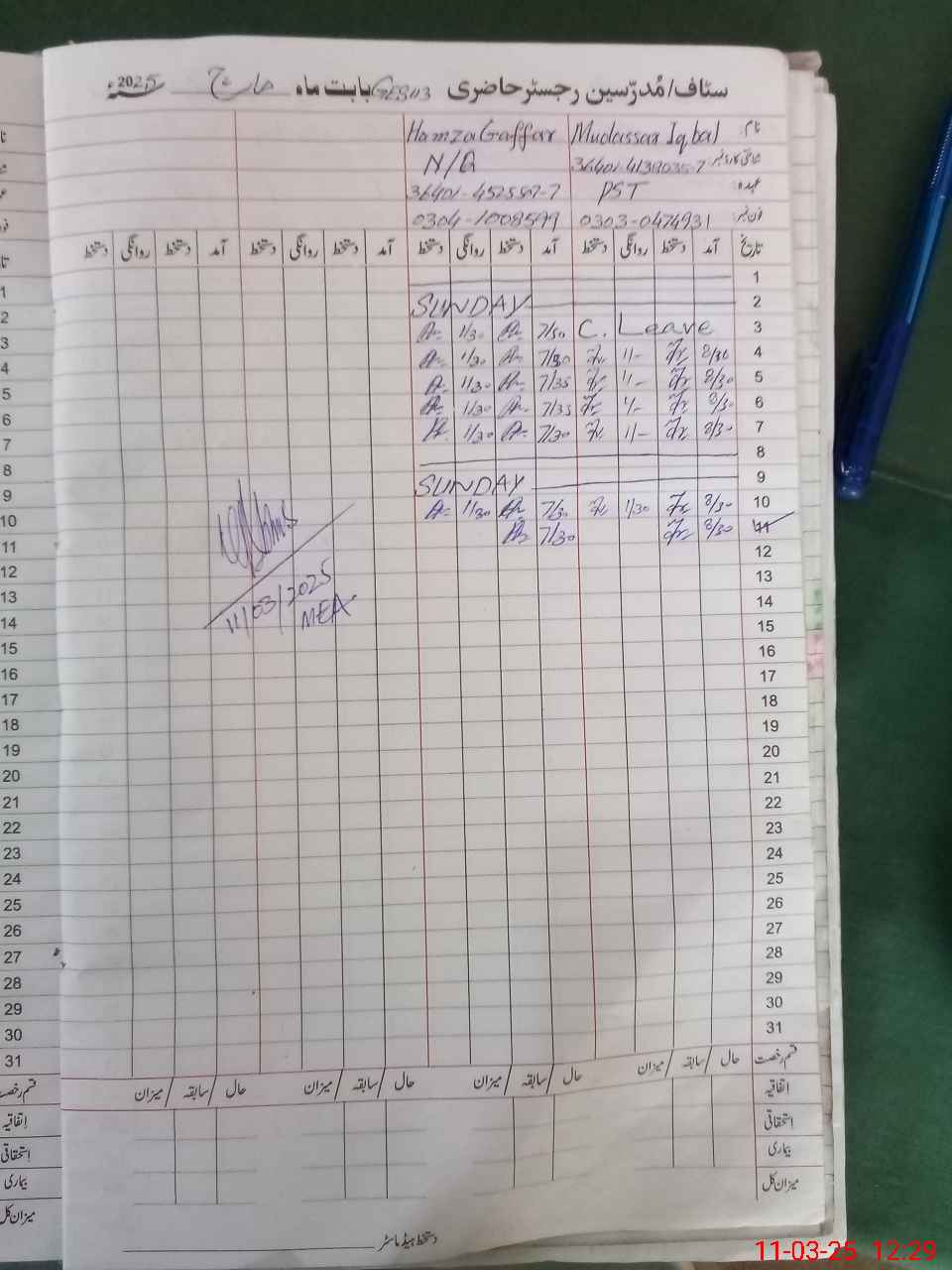 | Name: GH**** MU**** Designation: (School Headmaster's/Headmistress's) EST (GENERAL) Phone/Cell Number: 03**** |