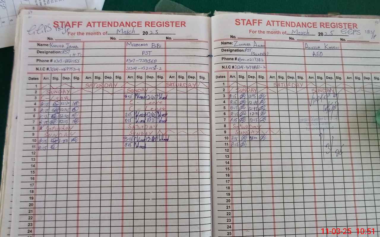 | Name: Kh**** Is**** Designation: (School Headmaster's/Headmistress's) PST Phone/Cell Number: 03**** |