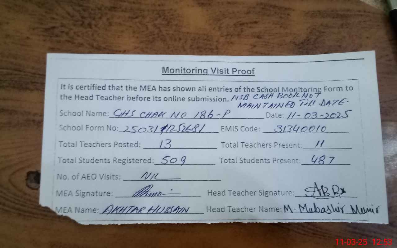 | EMIS Code: 31340010 | Name of School: GHS CHAK 186/P | |||