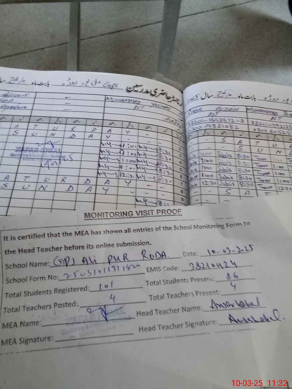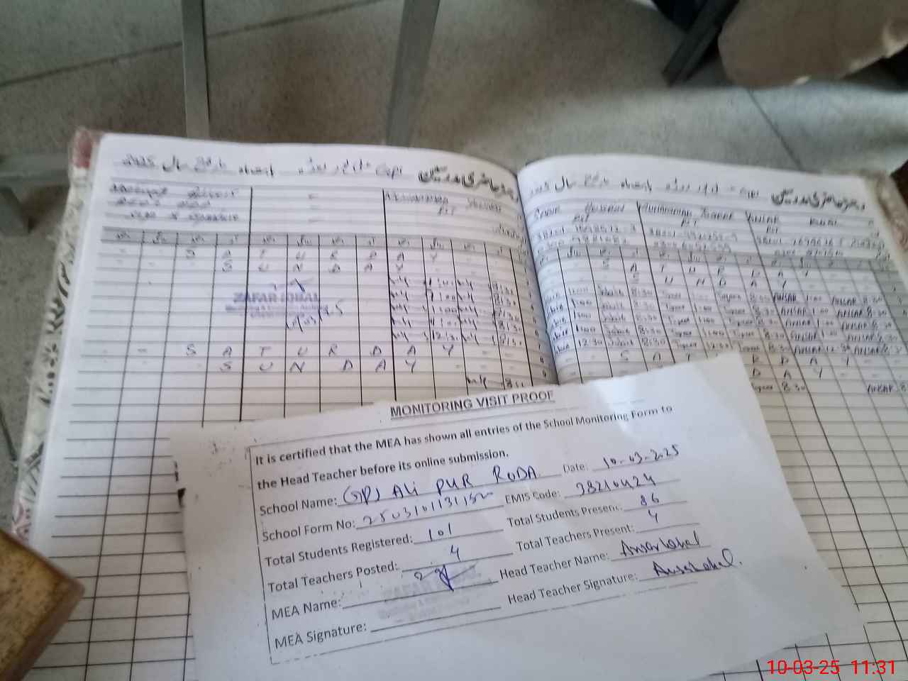 | EMIS Code: 38210424 | Name of School: GPS ALI PUR RODA | |||