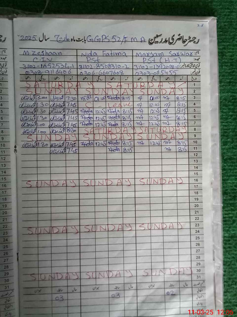 | Name: Ma**** Sa**** Designation: (School Headmaster's/Headmistress's) PST Phone/Cell Number: 03**** |