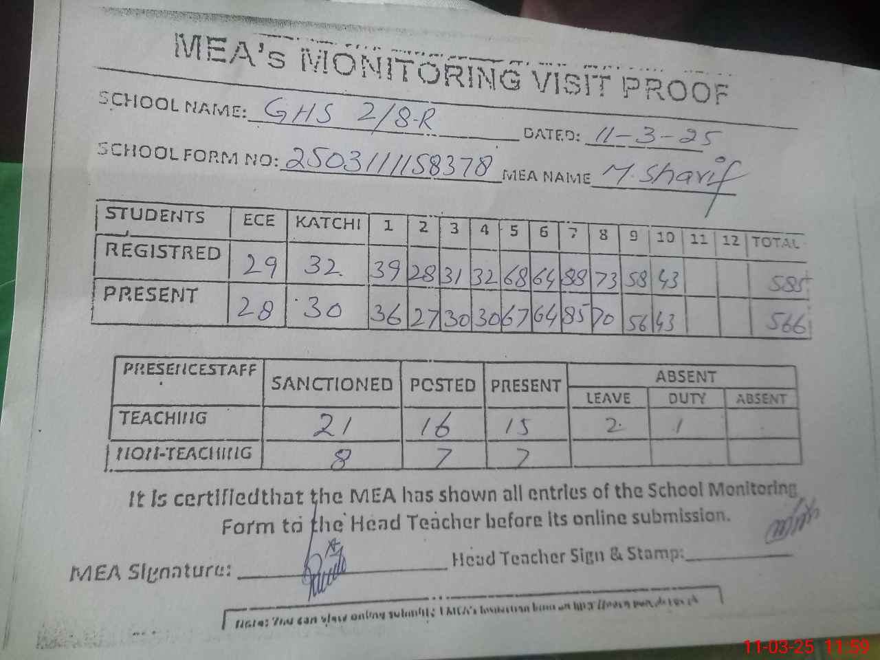 | EMIS Code: 36430028 | Name of School: GHS 2/8-R MIRZA PUR | |||
