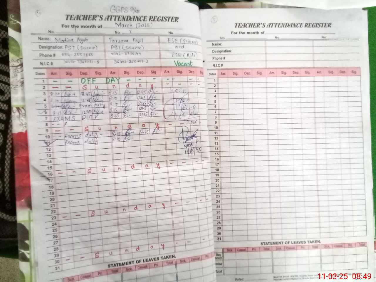 | Name: Ma**** Ay**** Designation: (School Headmaster's/Headmistress's) PST Phone/Cell Number: 03**** |