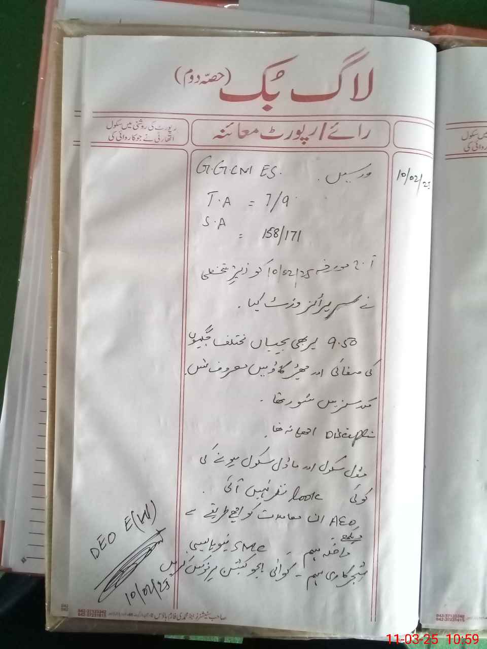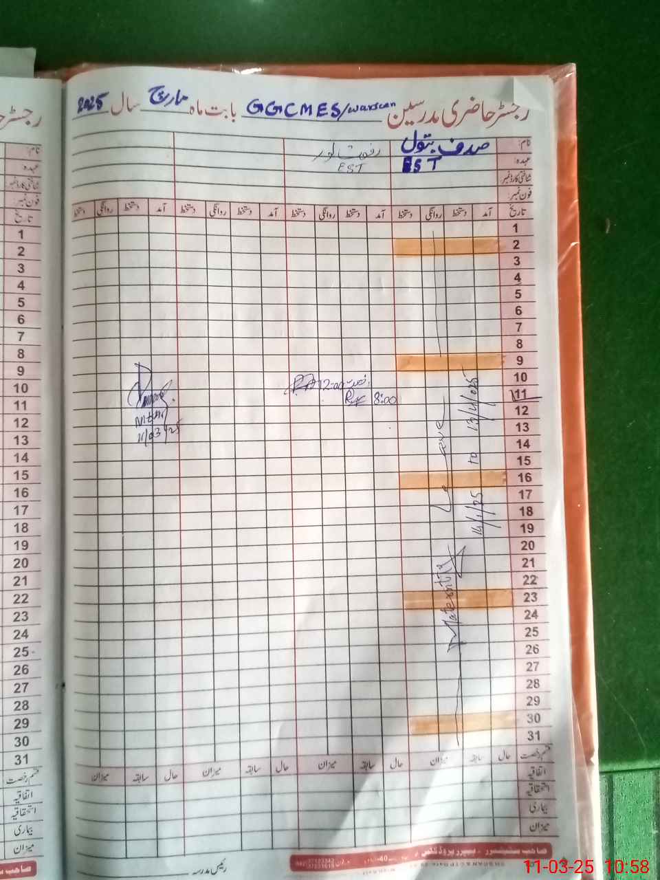 | Remarks (Use Separate Page if Required): Books record D 4 incomplt Sti teacher Rifat Noor present in this school | |||||