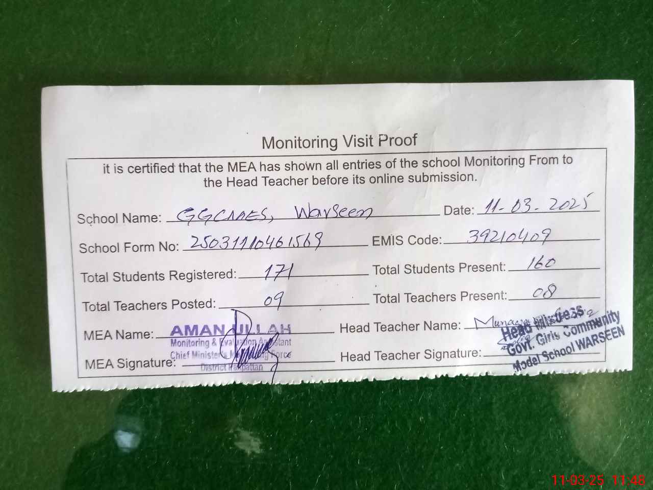 | EMIS Code: 39210409 | Name of School: GGCMES WARSEEN | |||