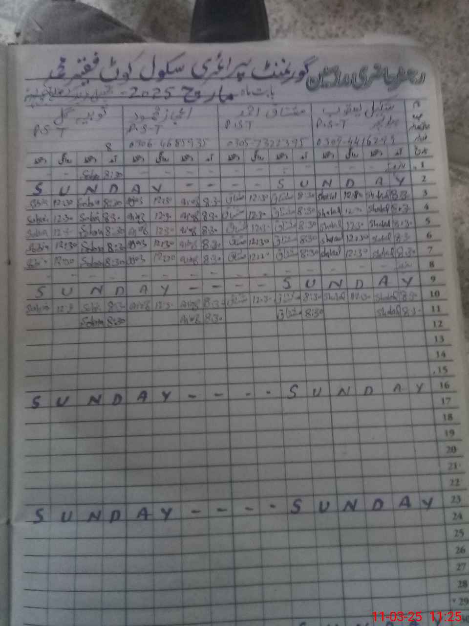 | Name: SH**** YA**** Designation: (School Headmaster's/Headmistress's) PST Phone/Cell Number: 03**** |