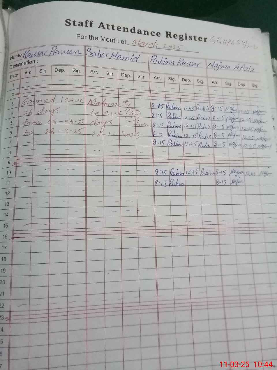 | 35**** | Kh**** Sh**** | PST | Regular | 2 | 0 | 0 | 0 | 0 | 0 | 0 | 0 | 2 | Exam Duty |