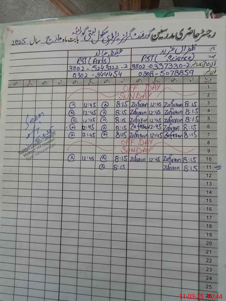 | Name: ZA**** FR**** Designation: (School Headmaster's/Headmistress's) ESE SCI MATH Phone/Cell Number: 03**** |