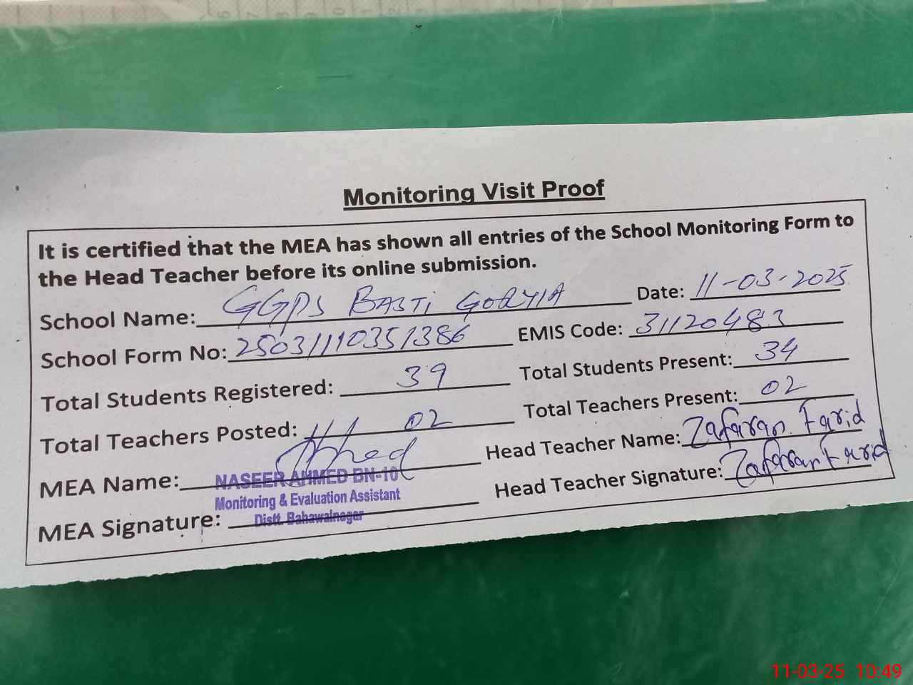 | EMIS Code: 31120483 | Name of School: GGPS BASTI GURAIA | |||