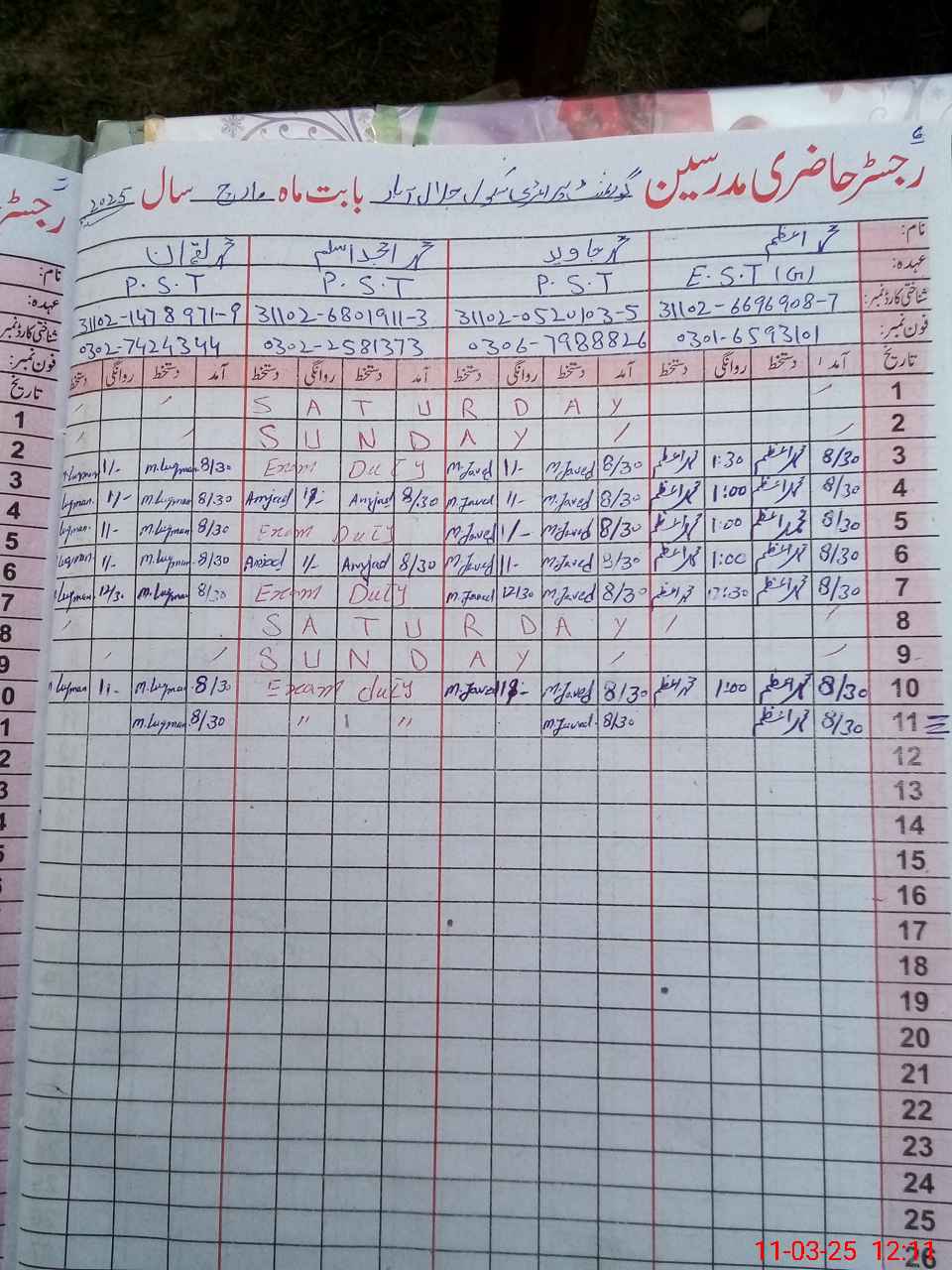 | Name: MU**** JA**** Designation: (School Headmaster's/Headmistress's) PST Phone/Cell Number: 03**** |