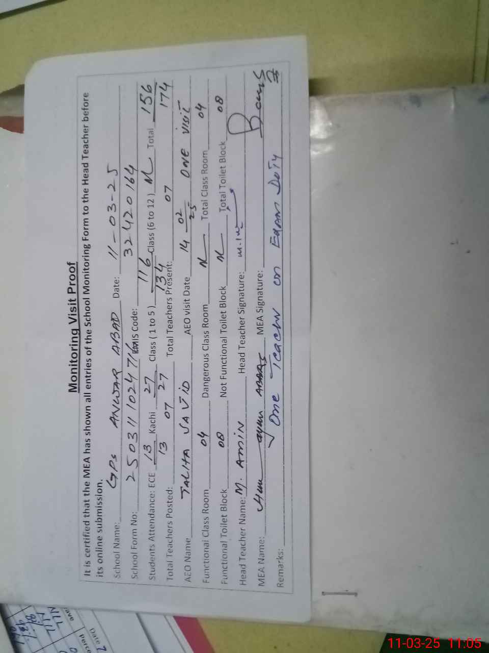 | EMIS Code: 32420164 | Name of School: GPS ANWAR ABAD | |||