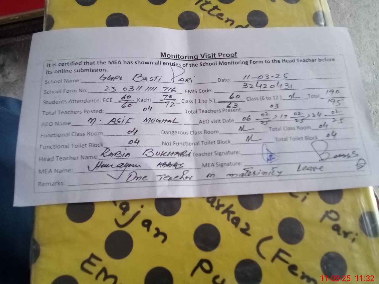 | EMIS Code: 32420431 | Name of School: GGPS BASTI PARI | |||