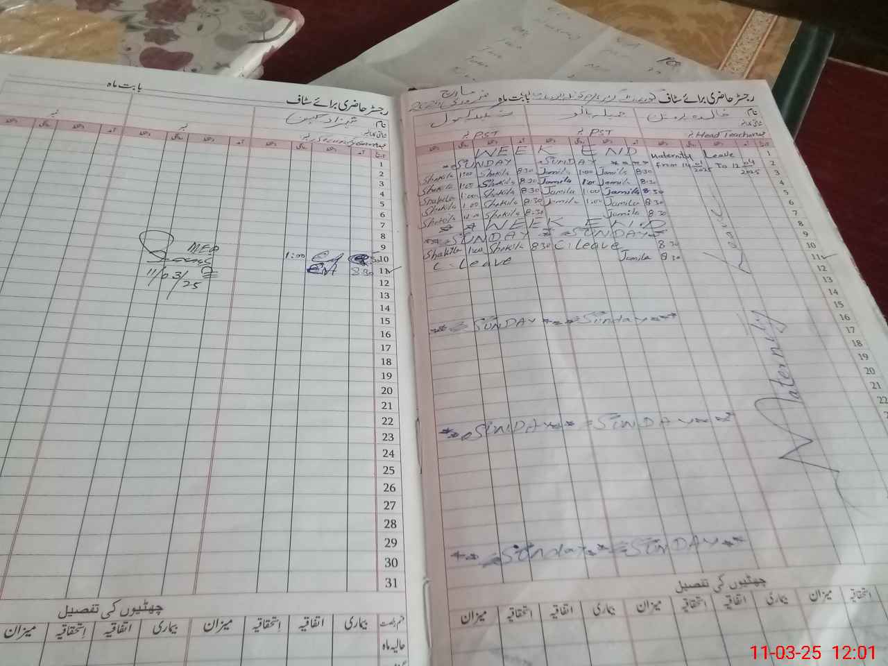 | Leave | Duty | Absent | Maternity | Medical | Ex- Pak |
