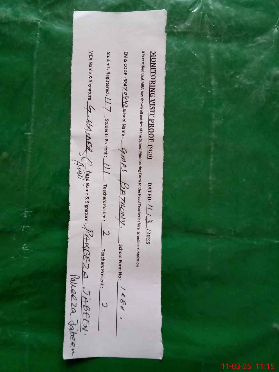 | EMIS Code: 38470442 | Name of School: GMPS BATHUNI | |||