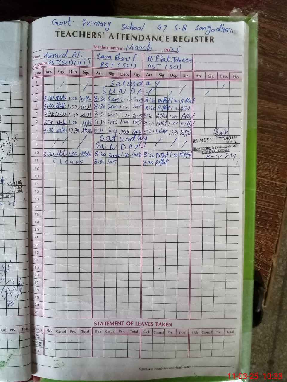 | Name: HA**** AL**** Designation: (School Headmaster's/Headmistress's) PST Phone/Cell Number: 03**** |