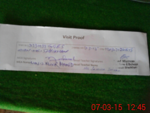| School Visited by School Health & Nutrition Supervisor (No. of Visits) | 1 | Name1: | Farhan Aslam | Name2: | Null |