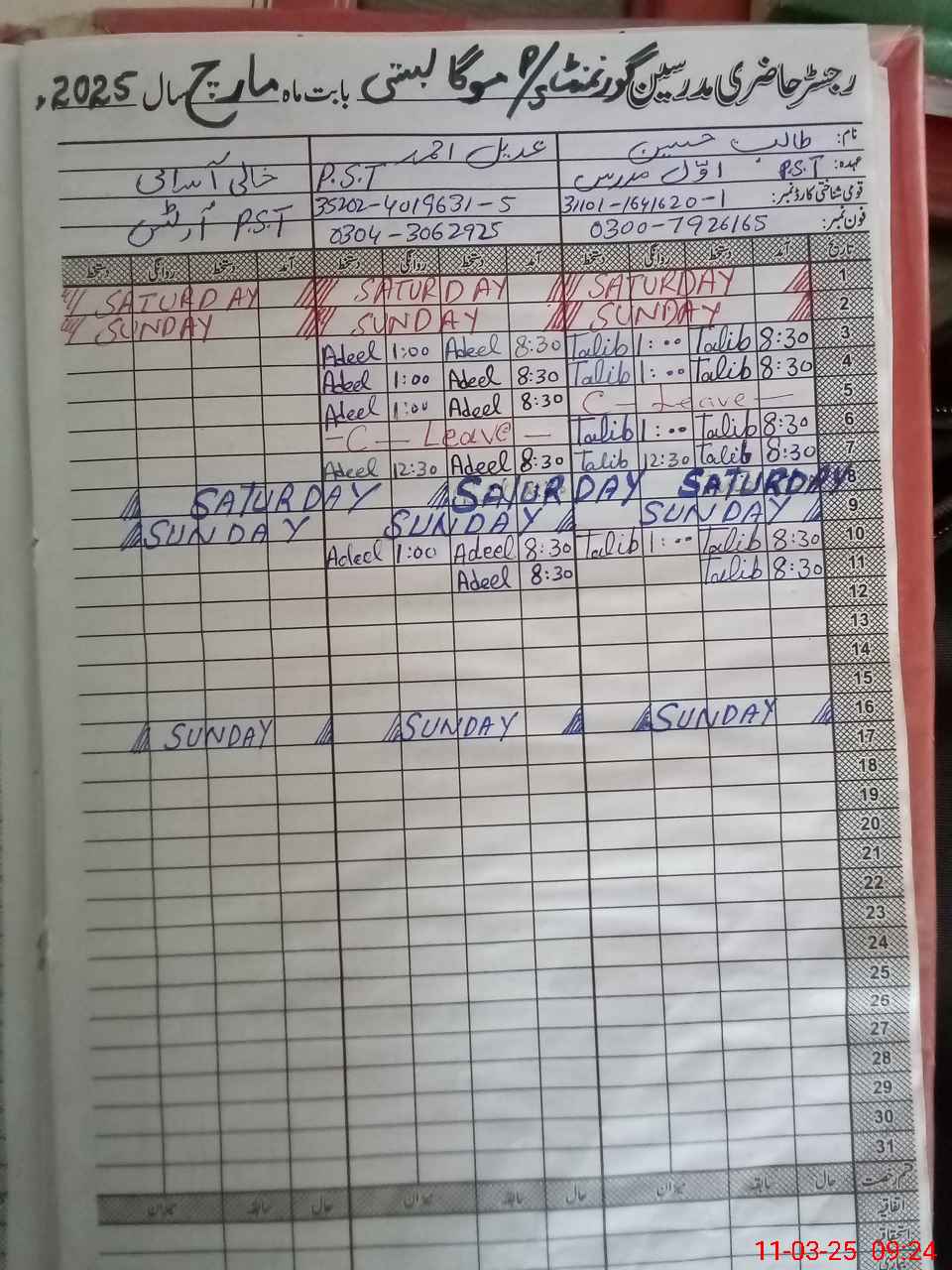 | Name: TA**** HU**** Designation: (School Headmaster's/Headmistress's) PST Phone/Cell Number: 03**** |