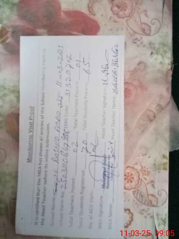 | Attendance Register | Head Teacher | MEA with School | Visit Proof |