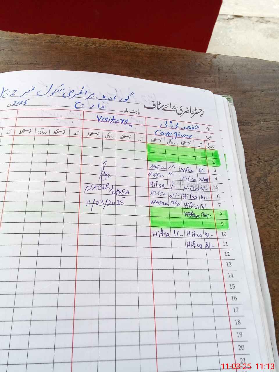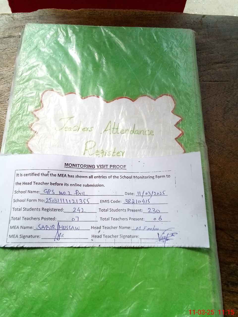 | Attendance Register | Head Teacher | MEA with School | Visit Proof |