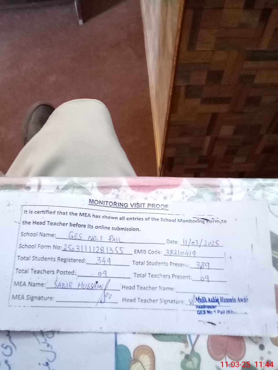 | Certified that this School was Inspected by the Undersigned MEA/DMO Today and the Information Stated Above is as Per Record. | |||||