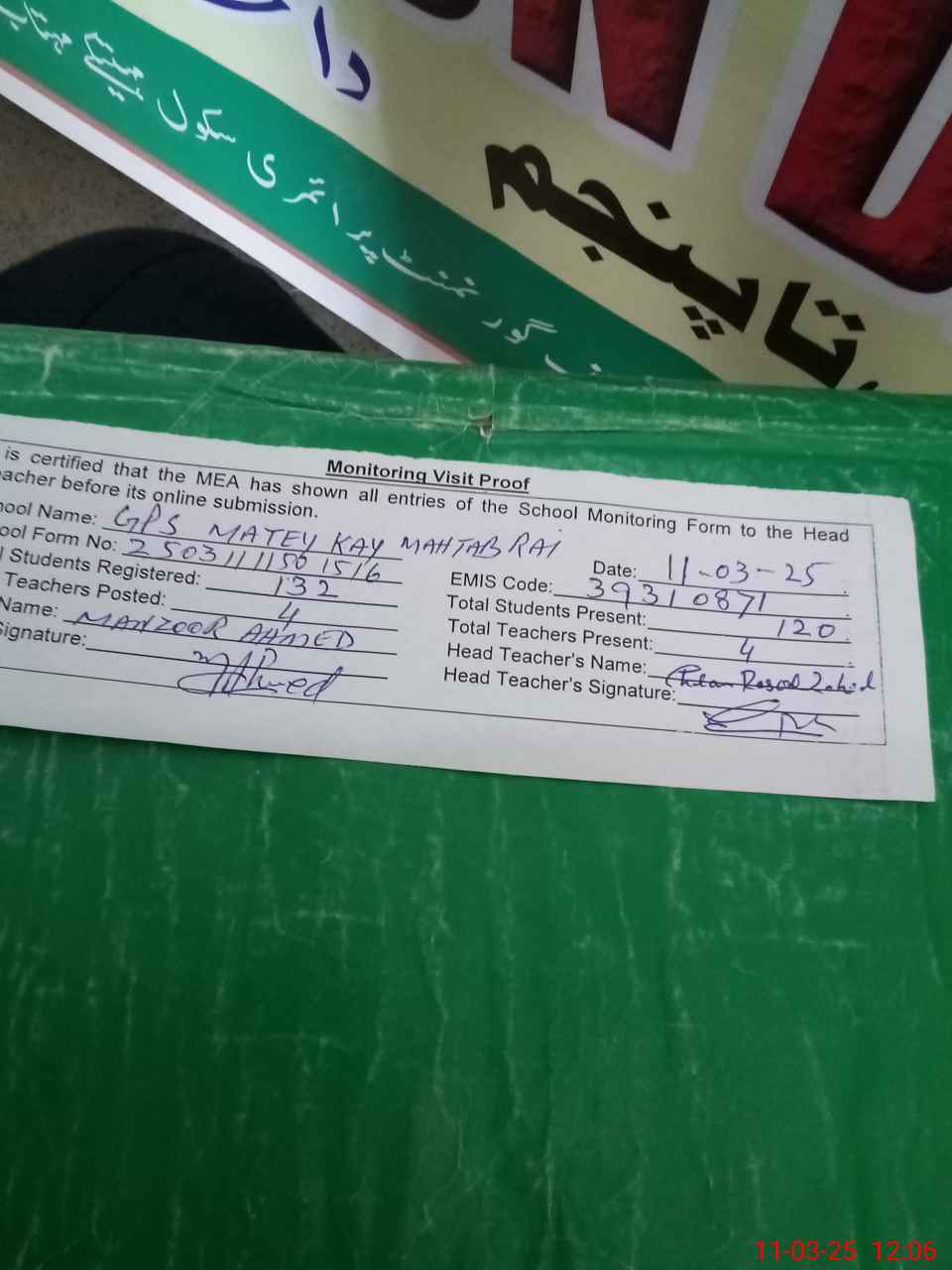 | EMIS Code: 39310871 | Name of School: GPS MATEY KAY MAHTAB RAI | |||