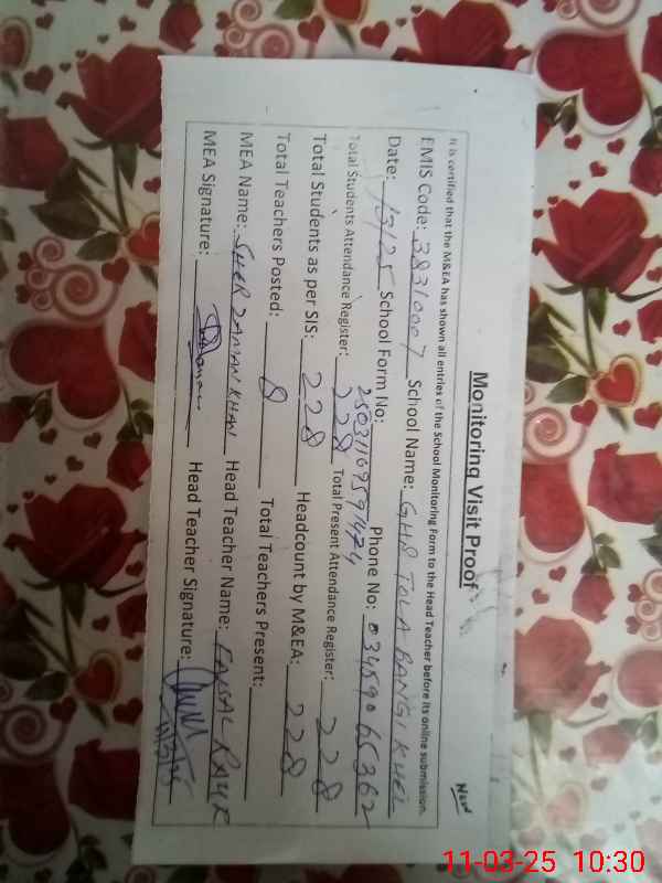 | EMIS Code: 38310007 | Name of School: GHS TOLA BANGI KHEL | |||