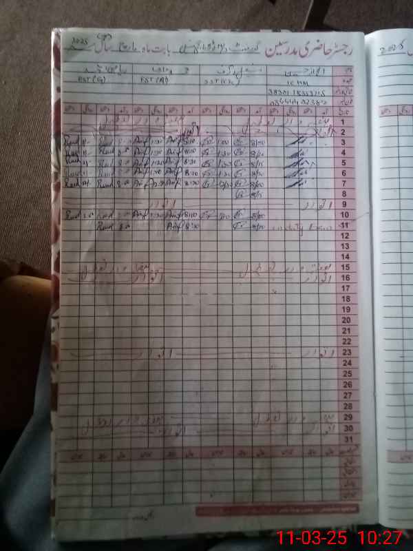 | CNIC | Full Name | Designation | R/C | Absence During Last Calender Month |
