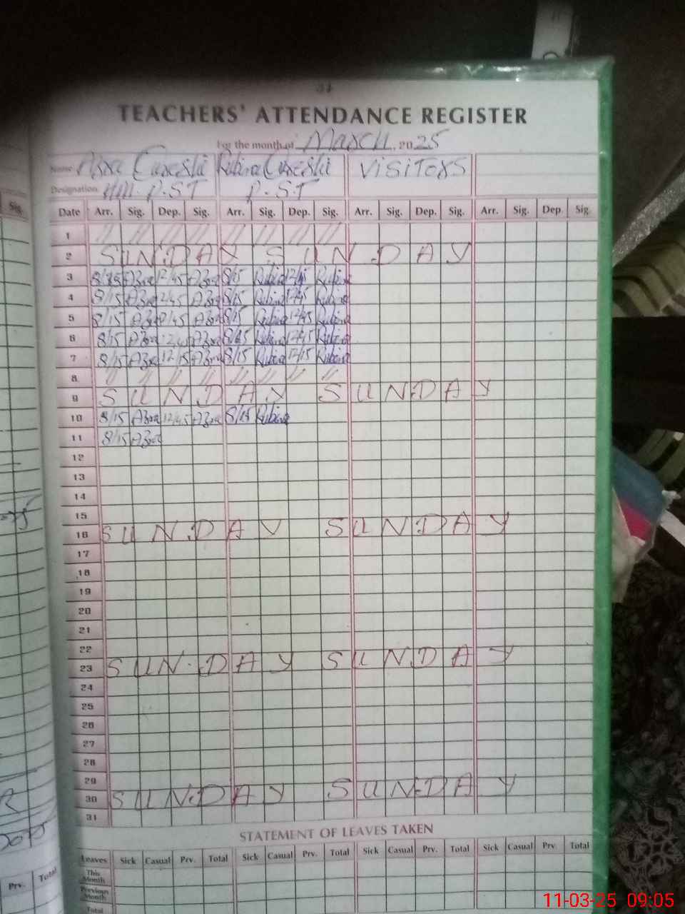 | 36**** | Ru**** Qu**** | 1 | 1 | 0 | 0 | 0 | 0 | 0 | 0 | 0 | 0 | 0 | Absent (Un-Authorized) |