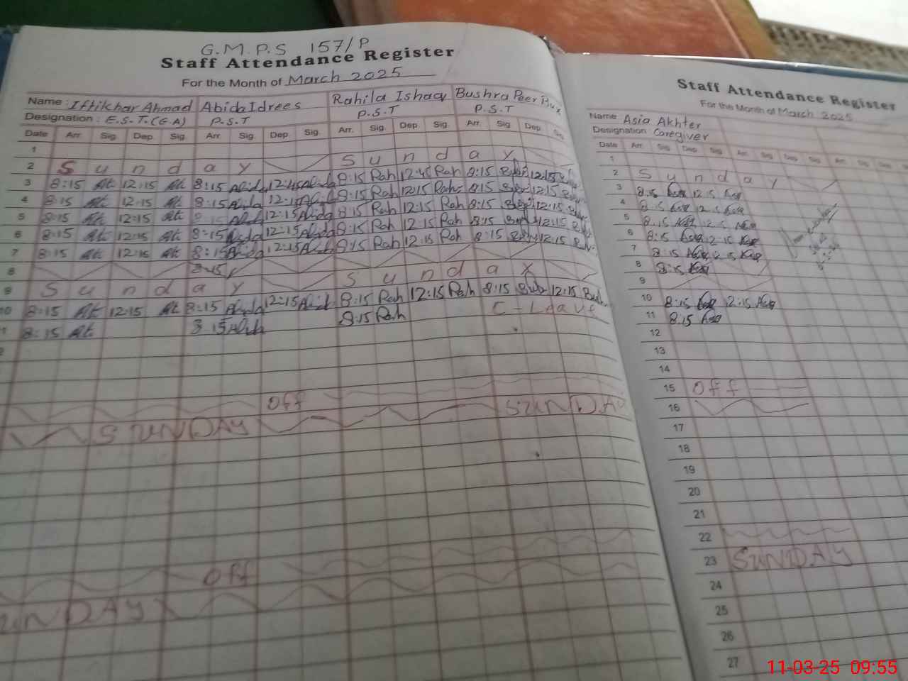 | 31**** | Bu**** Pe**** Bu**** | PST | Regular | 1 | 0 | 0 | 0 | 0 | 0 | 0 | 0 | 1 | Casual |