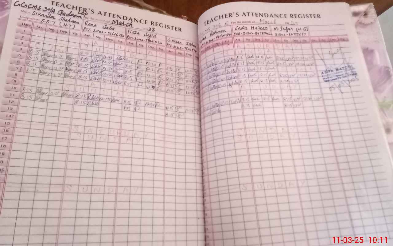 | Name: SI**** SH**** Designation: (School Headmaster's/Headmistress's) S.S.T.(GEN) Phone/Cell Number: 03**** |
