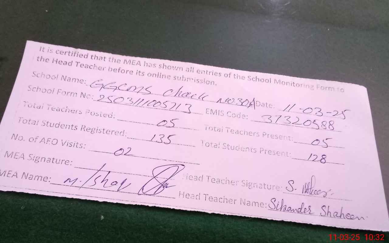 | EMIS Code: 31320588 | Name of School: GGCMS CHAK NO.30/A | |||