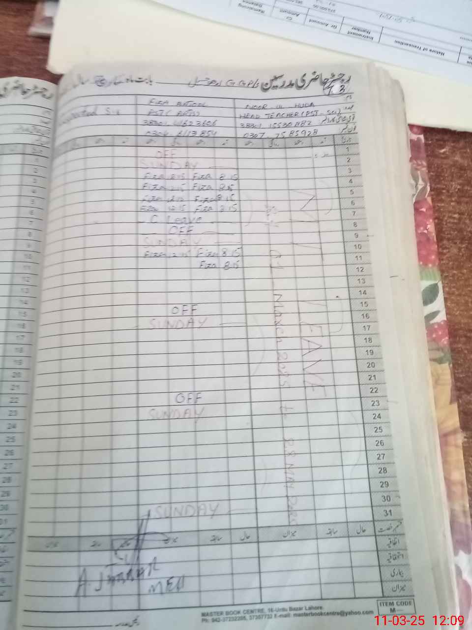 | Name: No**** UlHu**** Designation: (School Headmaster's/Headmistress's) PST Phone/Cell Number: 03**** |
