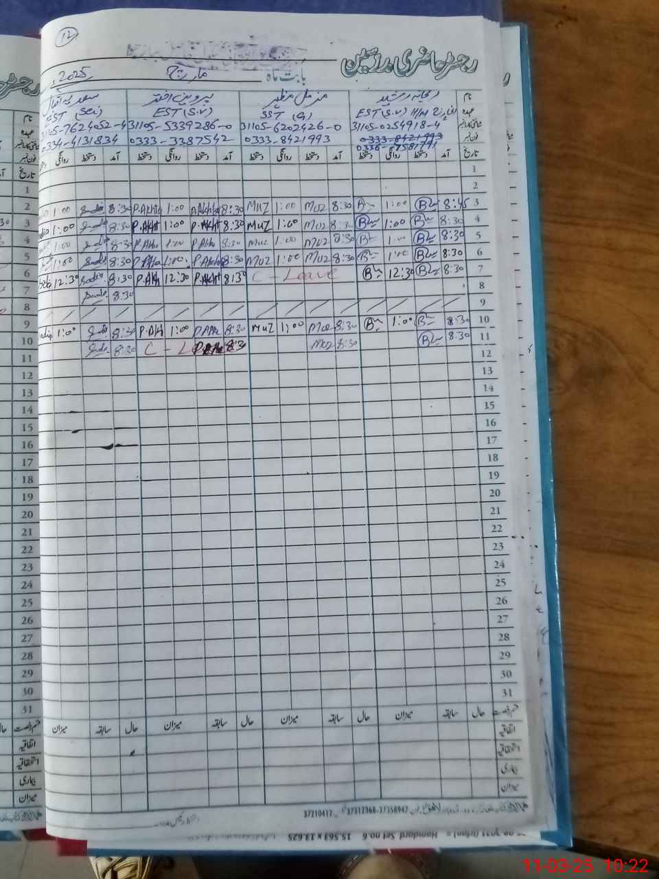 | CNIC | Full Name | Designation | R/C | Absence During Last Calender Month |
