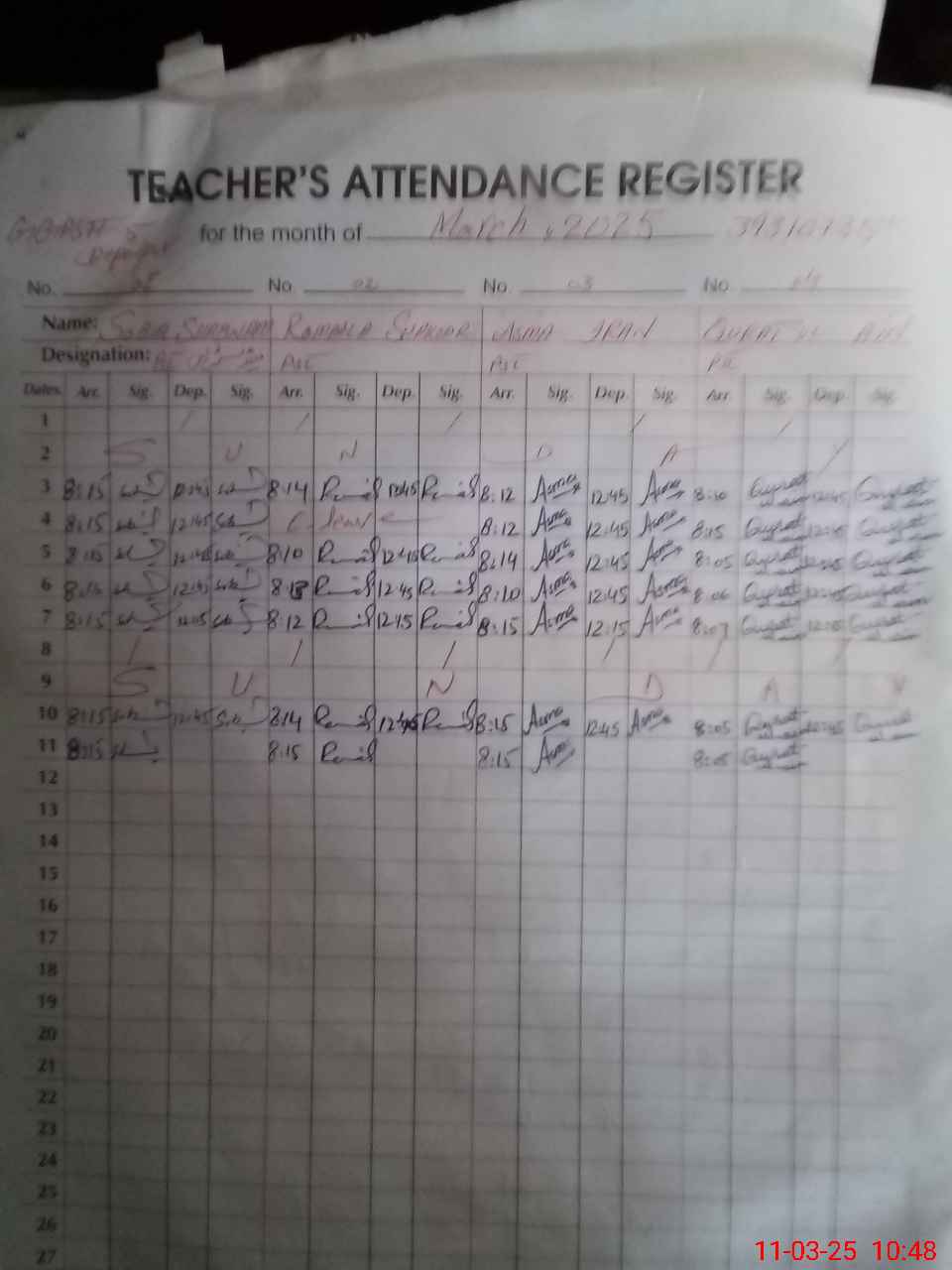 | Monitoring Date: 11-03-2025 | Start Time: 11-03-2025 10:47 AM | End Time: 11-03-2025 11:18 AM | Name of MEA: MU**** AK**** TA**** | |