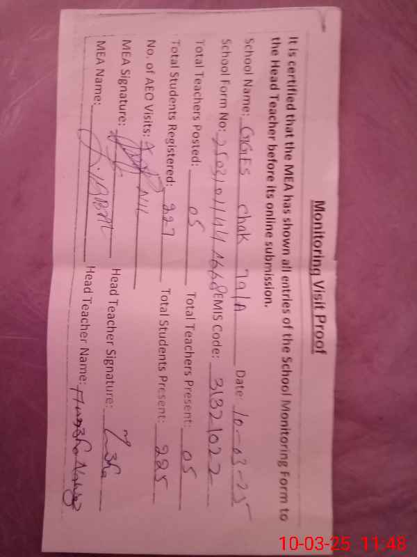 | EMIS Code: 31321022 | Name of School: GGES CHAK NO. 79/A | |||