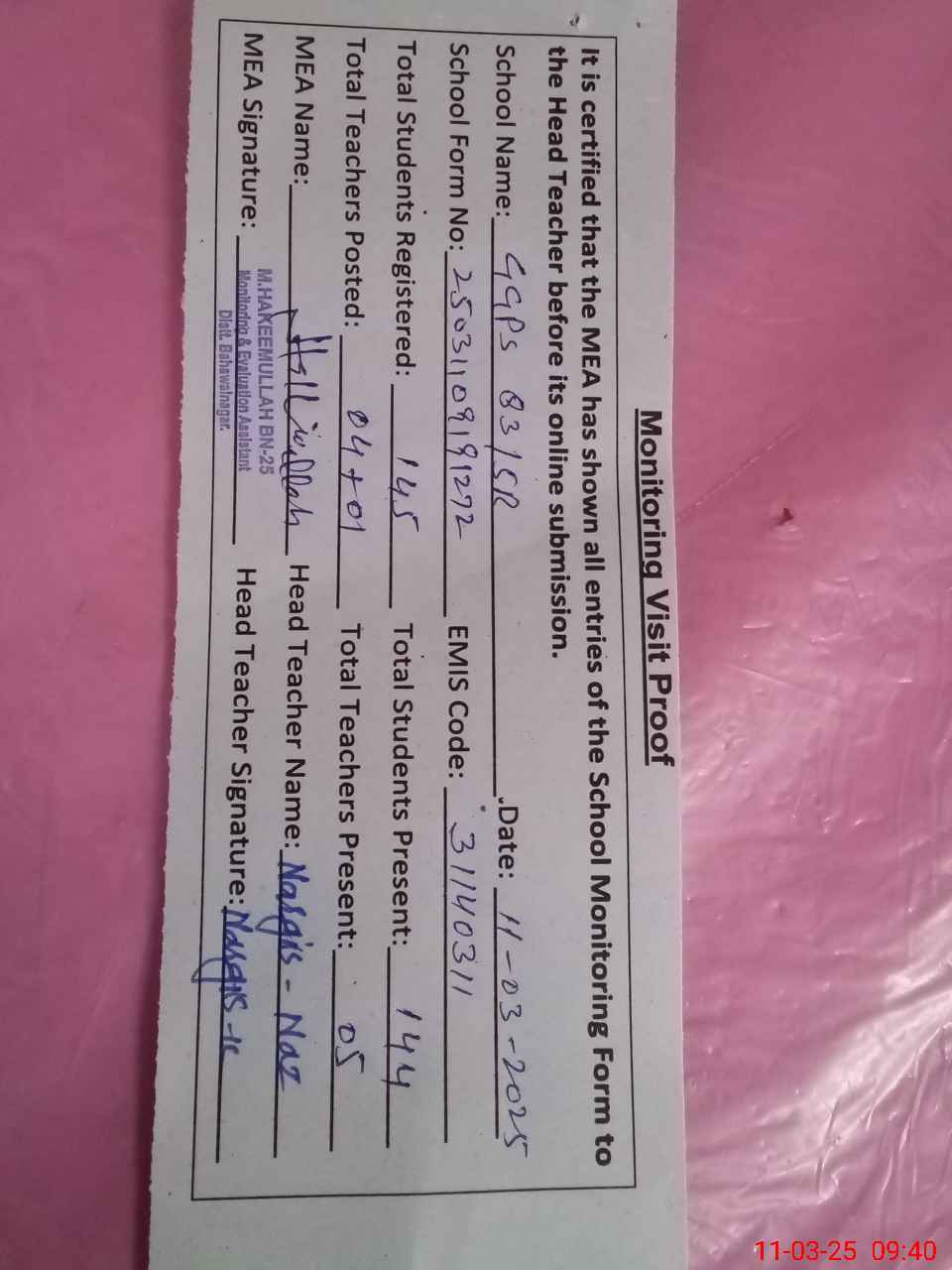 | EMIS Code: 31140311 | Name of School: GGPS 87/5-R | |||