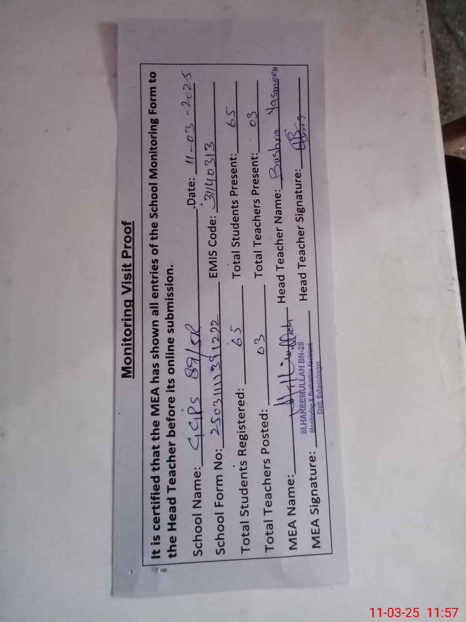 | EMIS Code: 31140313 | Name of School: GGPS CHAK NO 89/5-R | |||