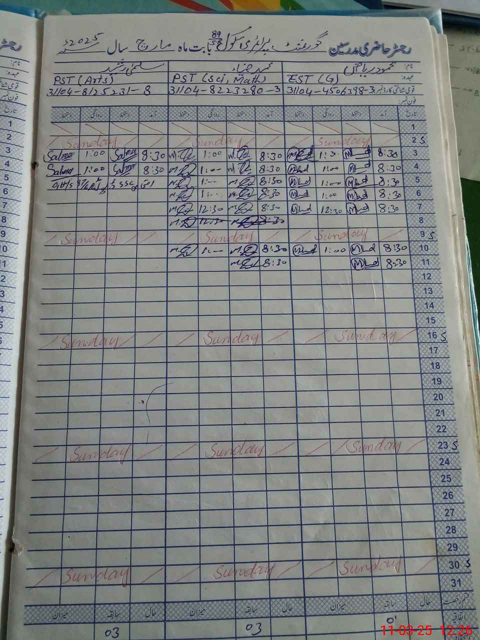 | 31**** | Sa**** Ra**** | 2 | 2 | 0 | 0 | 0 | 0 | 0 | 0 | 0 | 2 | Exam Duty | |
