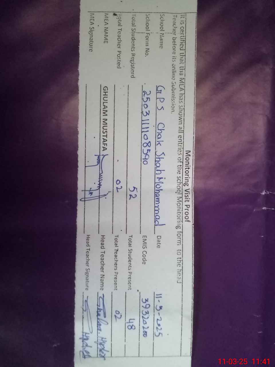 | EMIS Code: 39320200 | Name of School: GPS CHAK SHAH MUHAMMAD | |||