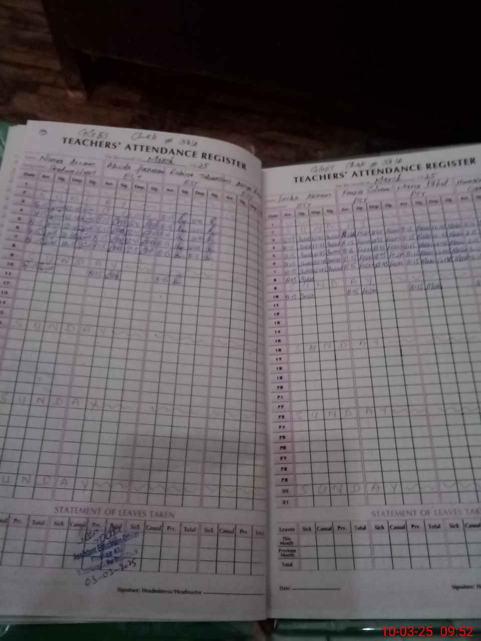 | Leave | Duty | Absent | Maternity | Medical | Ex- Pak |