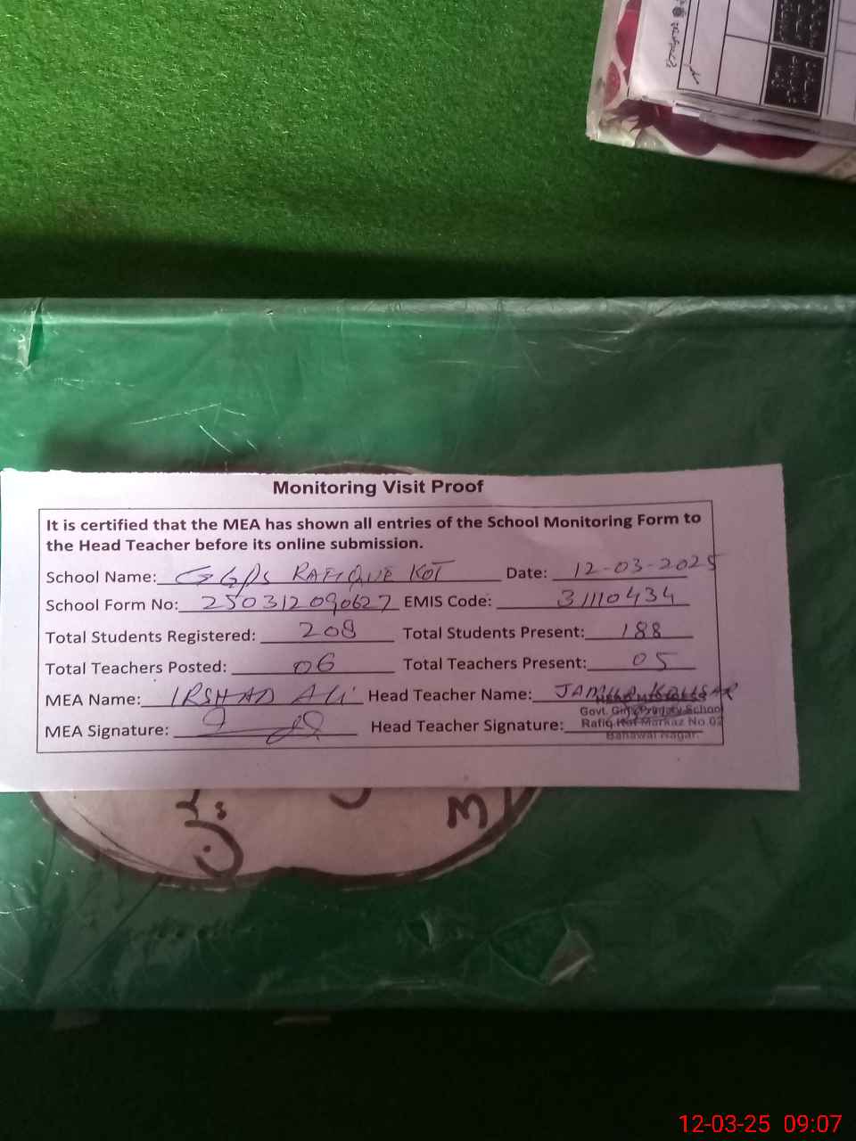 | EMIS Code: 31110434 | Name of School: GGPS RAFIQ KOT | |||