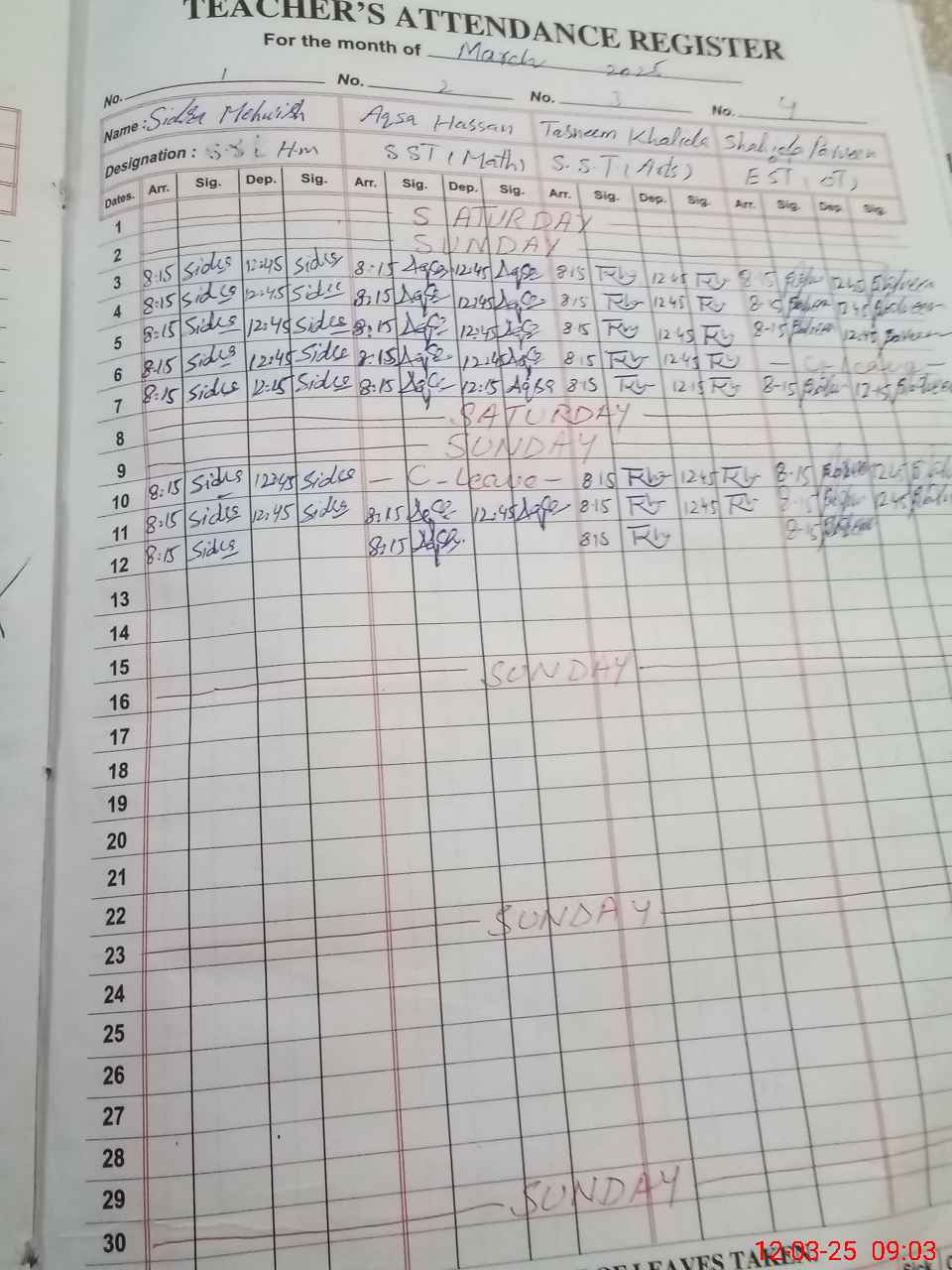 | 36**** | Sa**** Pa**** | PST | Regular | 2 | 0 | 0 | 0 | 0 | 0 | 0 | 0 | 2 | Exam Duty |