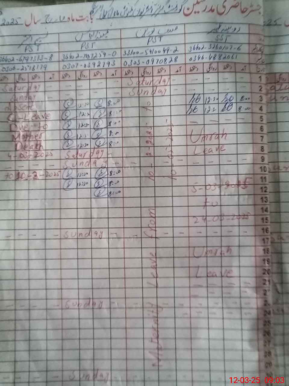 | Name: RO**** ZA**** Designation: (School Headmaster's/Headmistress's) SST (GENERAL) Phone/Cell Number: 03**** |