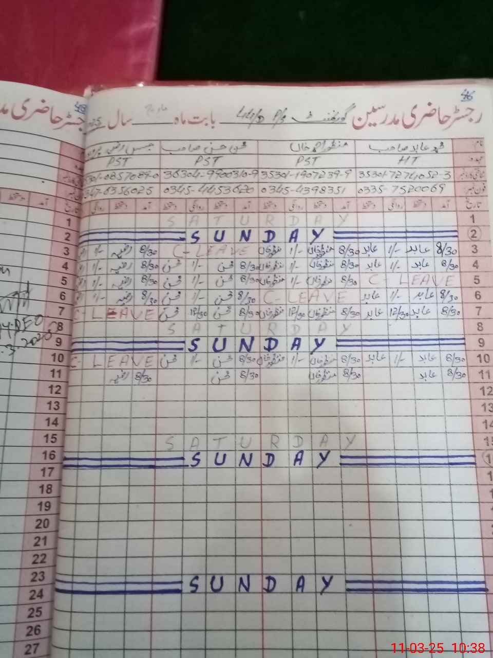 | Name: Mu**** Ab**** Designation: (School Headmaster's/Headmistress's) PST Phone/Cell Number: 03**** |