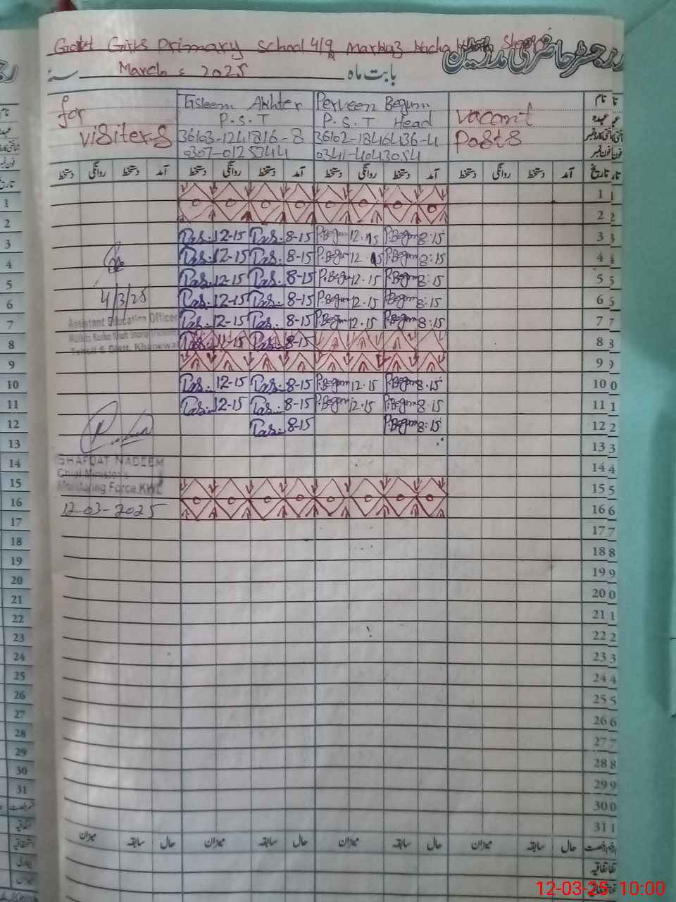| Name: Pe**** Be**** Designation: (School Headmaster's/Headmistress's) PST Phone/Cell Number: 03**** |