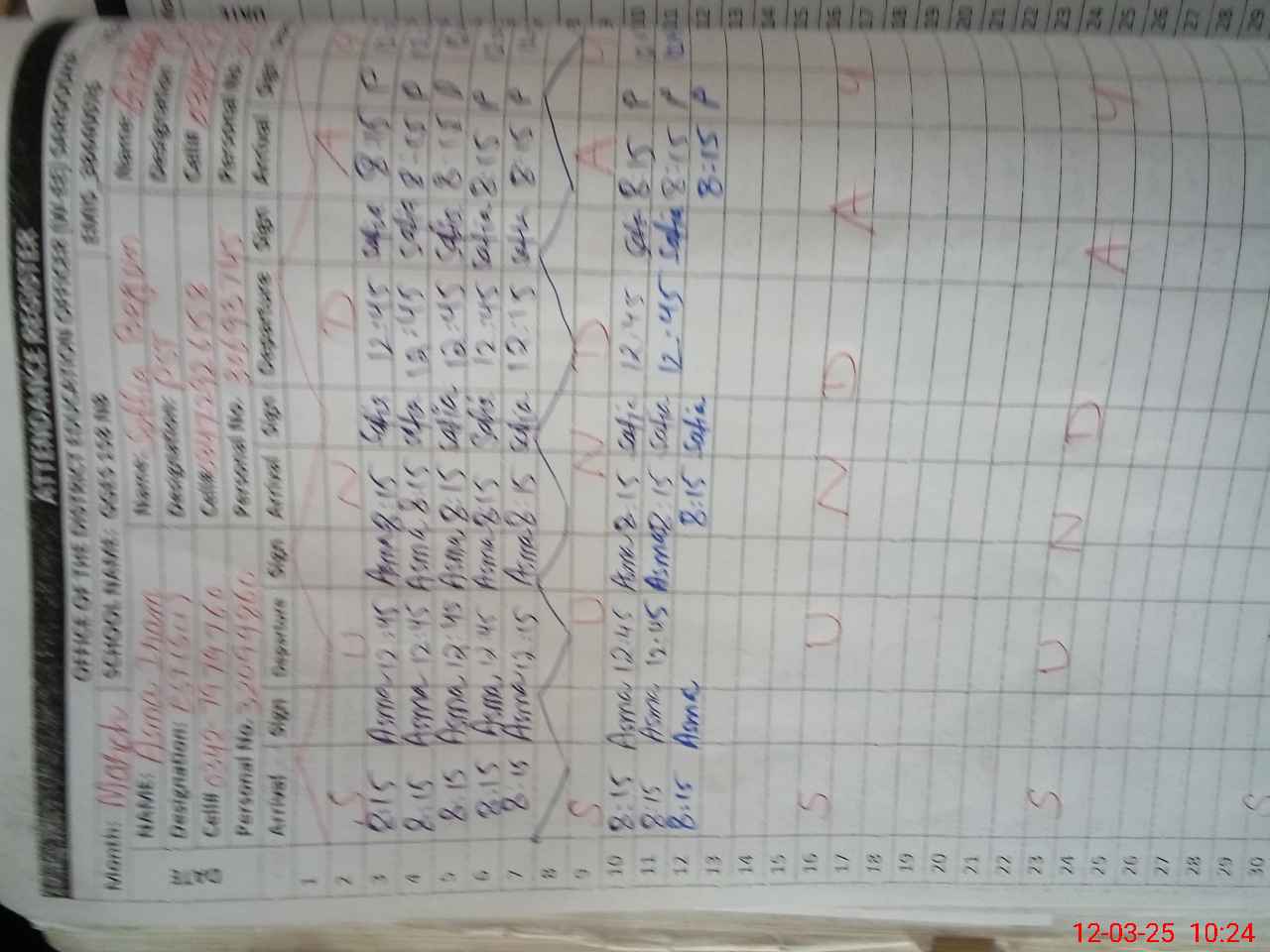 | Name: As**** Ir**** Designation: (School Headmaster's/Headmistress's) EST SCI Phone/Cell Number: 03**** |