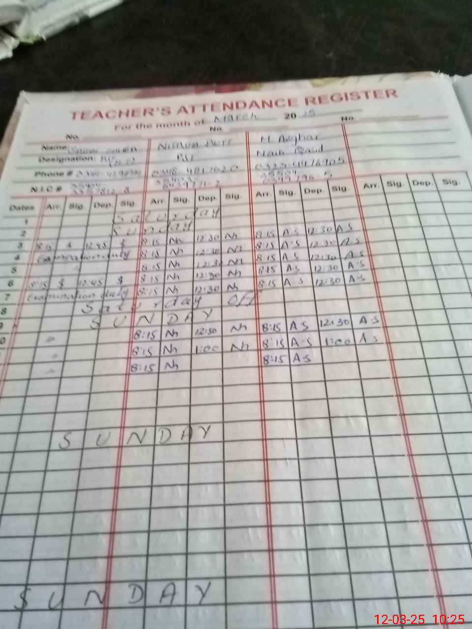 | 35**** | Sa**** Za**** Na**** | 1 | 1 | 0 | 0 | 0 | 0 | 0 | 0 | 0 | 0 | 0 | Exam Duty |
