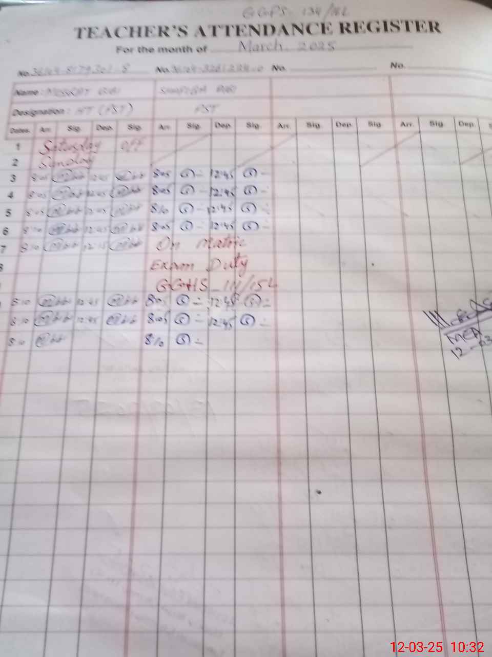 | Name: Mu**** Bi**** Designation: (School Headmaster's/Headmistress's) PST Phone/Cell Number: 03**** |