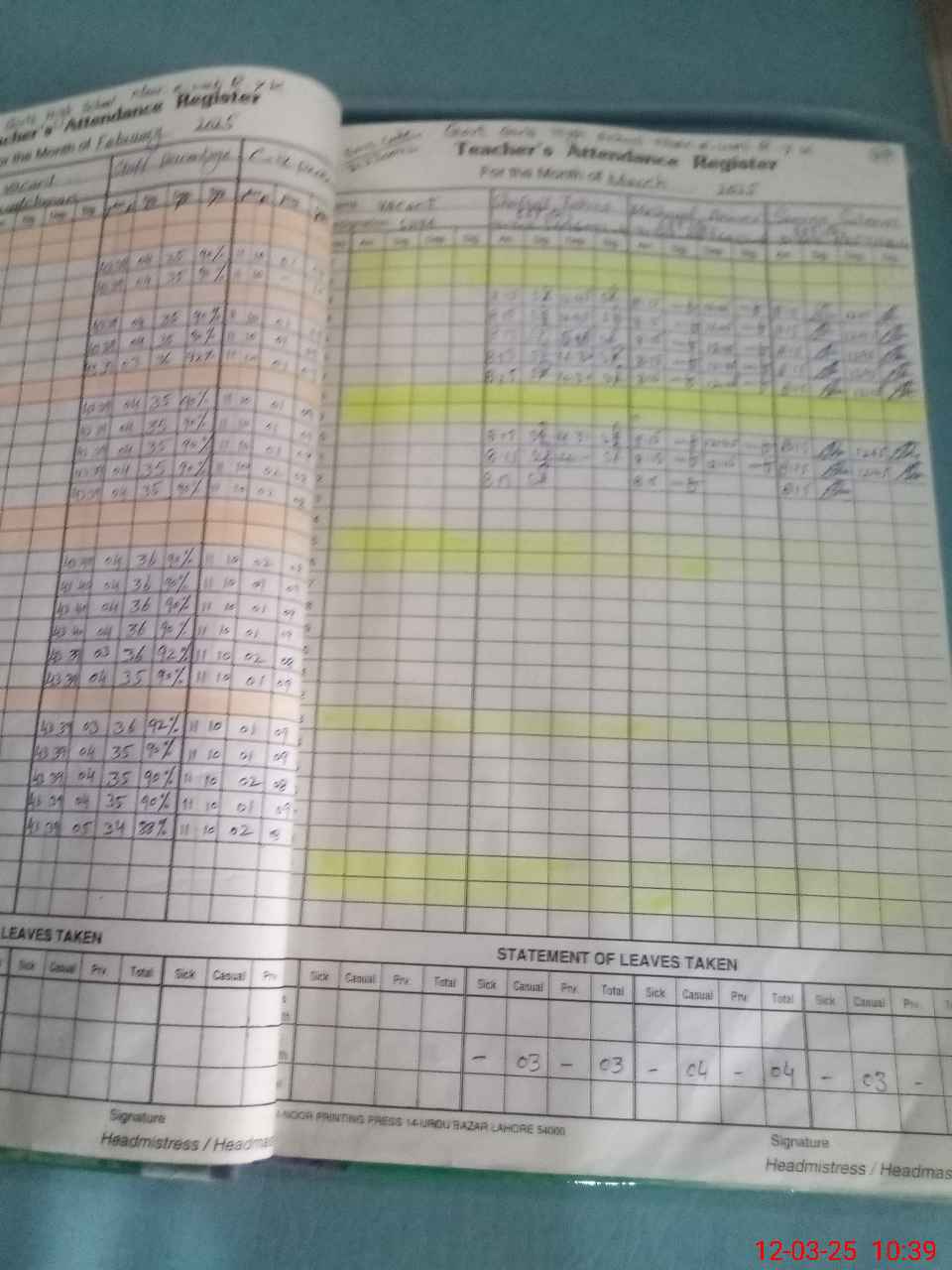 | EMIS Code: 31330042 | Name of School: GGHS NOORAY WALI | |||