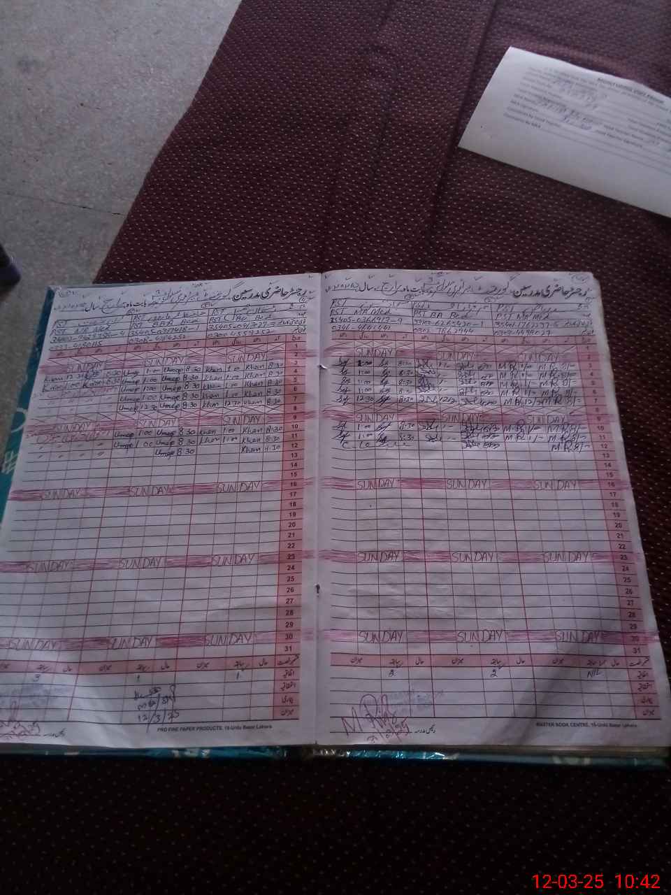 | CNIC | Full Name | Designation | R/C | Absence During Last Calender Month |